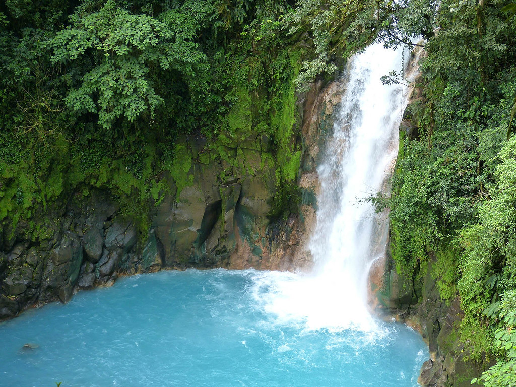Catarata Río Celeste (a una hora de La Fortuna, en el Parque Nacional Volcán Tenorio): famosa por su color turquesa intenso, ideal para quienes disfrutan del senderismo.