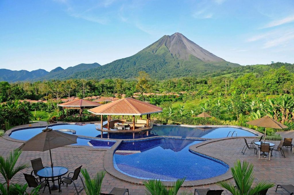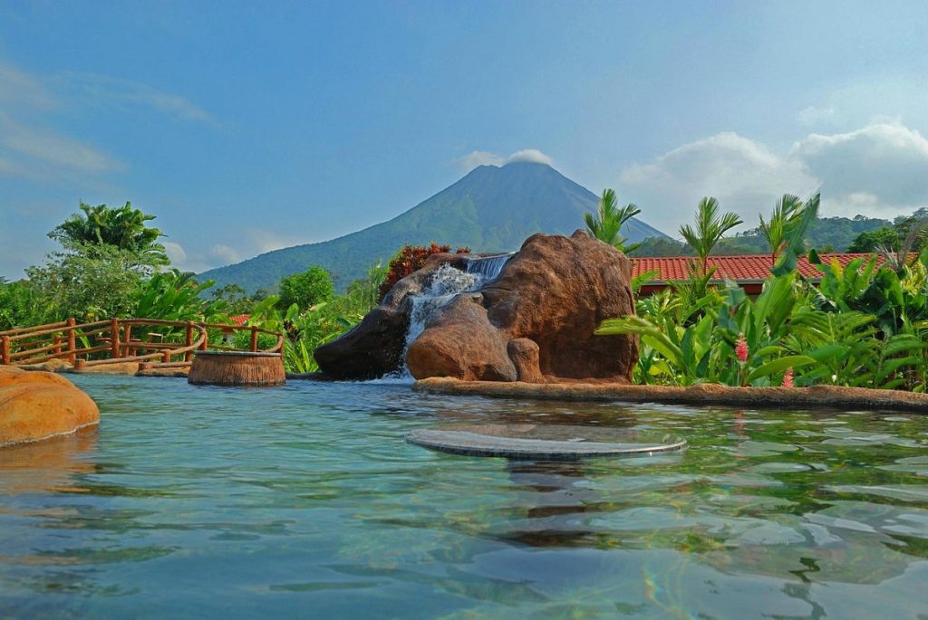 - Tabacón Thermal Resort & Spa: uno de los complejos más lujosos, con ríos termales naturales rodeados de jardines tropicales.