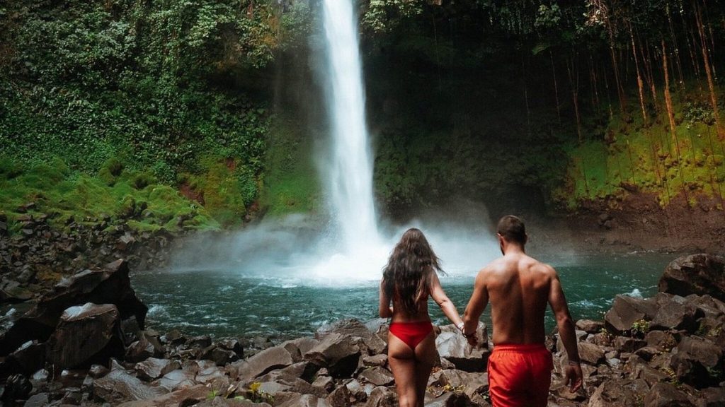 Catarata La Fortuna: caída de agua de 70 metros rodeada de bosque lluvioso. Se accede a través de un sendero de más de 500 gradas y al llegar podés nadar en sus aguas cristalinas.